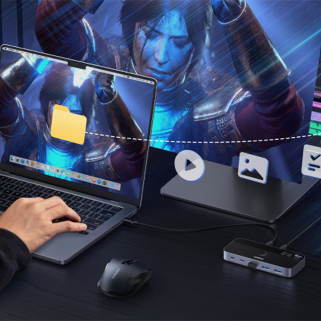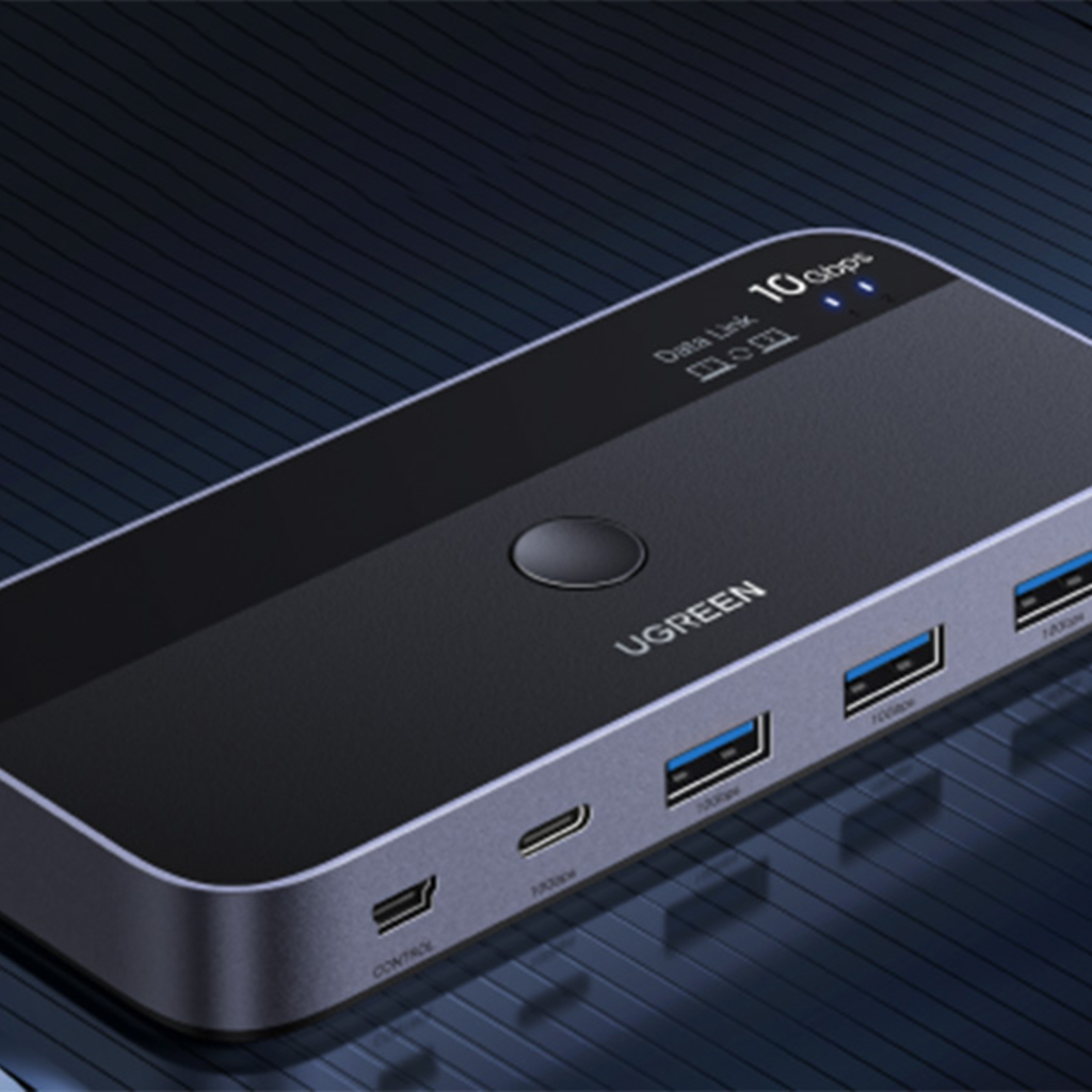 Az UGREEN CM691 kapcsoló lehetővé teszi, hogy akár négy USB-eszközt megosszon két számítógép között. Egyetlen kattintással válthat hozzáférést a laptopok vagy asztali számítógépek között. Ideális azok számára, akik két rendszeren vagy munkaállomáson dolgoznak - nincs szükség a kábelek átkötésére. A termék három USB-A 3.2 portot és egy USB-C 3.2 portot kínál.