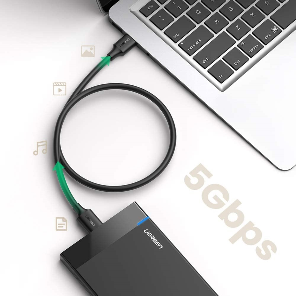 UGREEN kábel microUSB 3.0 szabványban. Gyors adatátvitelt tesz lehetővé akár 5 Gbps-ig az eszköz (pl. külső meghajtó) és a számítógép között, valamint hatékony tápellátást.