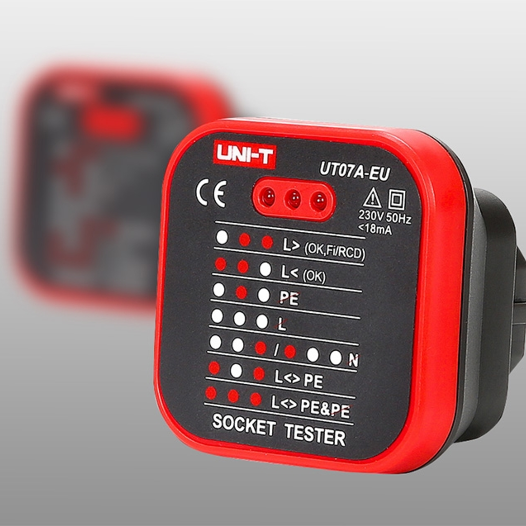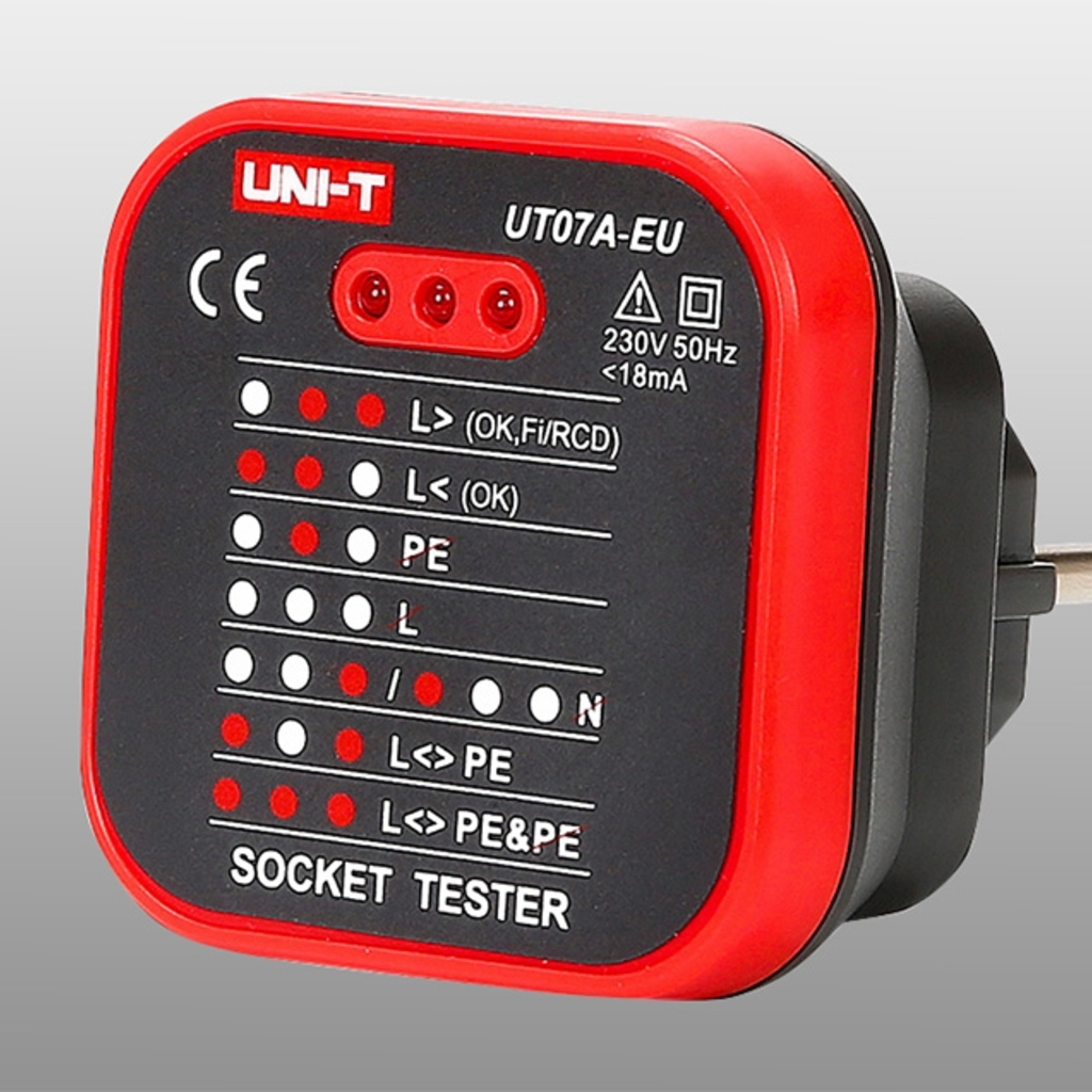 Az UT07A-EU olyan fényjelzőkkel van felszerelve, amelyek lehetővé teszik a hibás csatlakozások azonnali felismerését. Képes észlelni többek között a védő (földelő) vezeték hiányát, a nullavezető hiányát, valamint a fázis- és nullavezetők vagy a védővezetékek felcserélését. A tesztelő helyes csatlakoztatás esetén is kijelzi az információkat.
