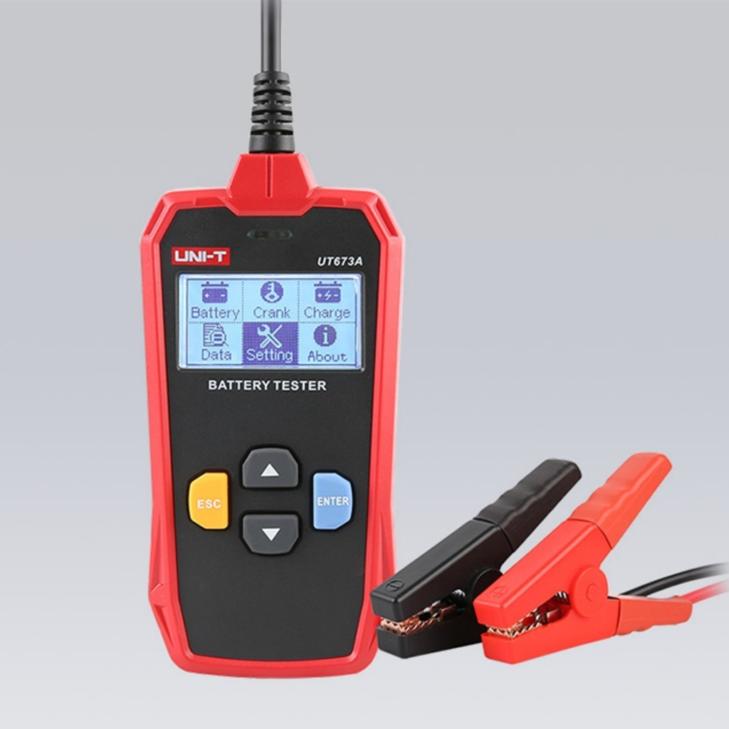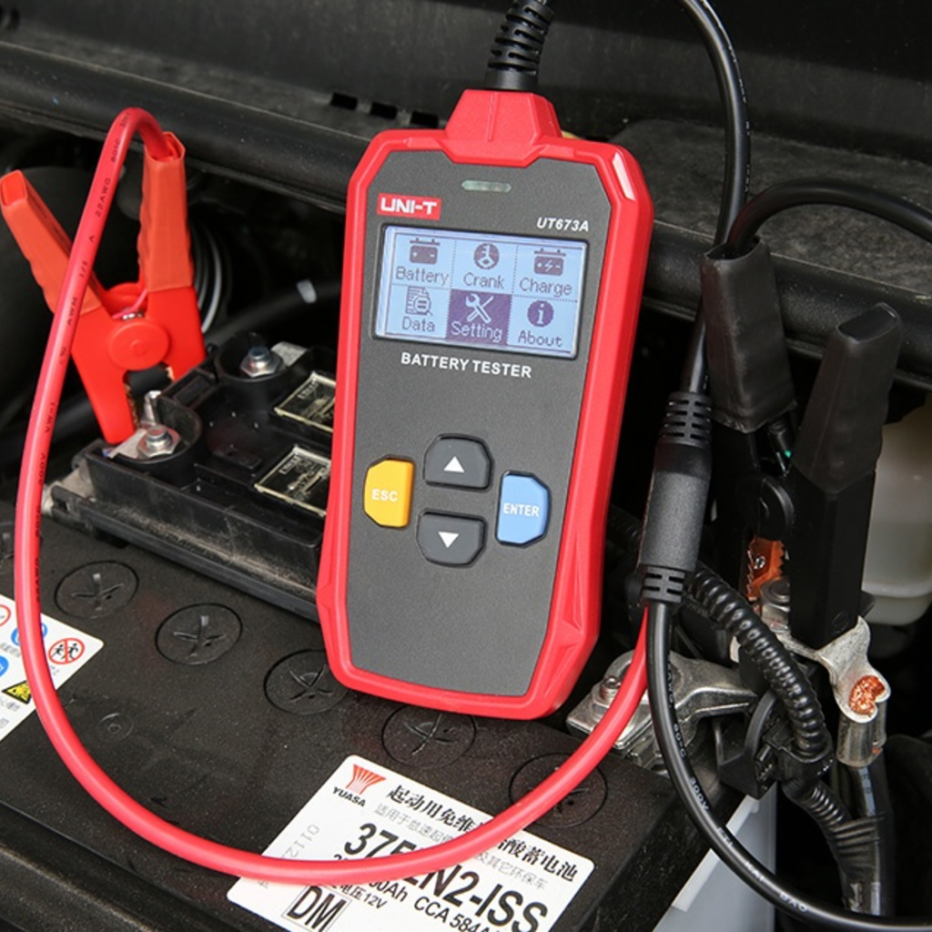 Az UNI-T UT673A autóakkumulátor-tesztelő egy fejlett készülék, amely lehetővé teszi a 3Ah-tól 250Ah-ig terjedő kapacitású akkumulátorok állapotának gyors és pontos elemzését. A CE, UKCA és FCC szabványok szerint tanúsított UT673A lehetővé teszi a 12V-os ólom-savas indítóakkumulátorok vizsgálatát, valamint a 12V/24V-os töltő- és indítórendszerek ellenőrzését. A tesztelő kijelzi a legfontosabb paramétereket, például a kapacitást, a feszültséget, az ellenállást és az akkumulátor élettartamának állapotát. A négypontos Kelvin-teszttel és akár 10 különböző akkumulátor-szabvány támogatásával az UT673A nagy pontosságú eredményeket biztosít anélkül, hogy az akkumulátort szét kellene szerelni. Ezenkívül a teszteredményt egy könnyen leolvasható LED-es jelzőlámpa formájában jeleníti meg.