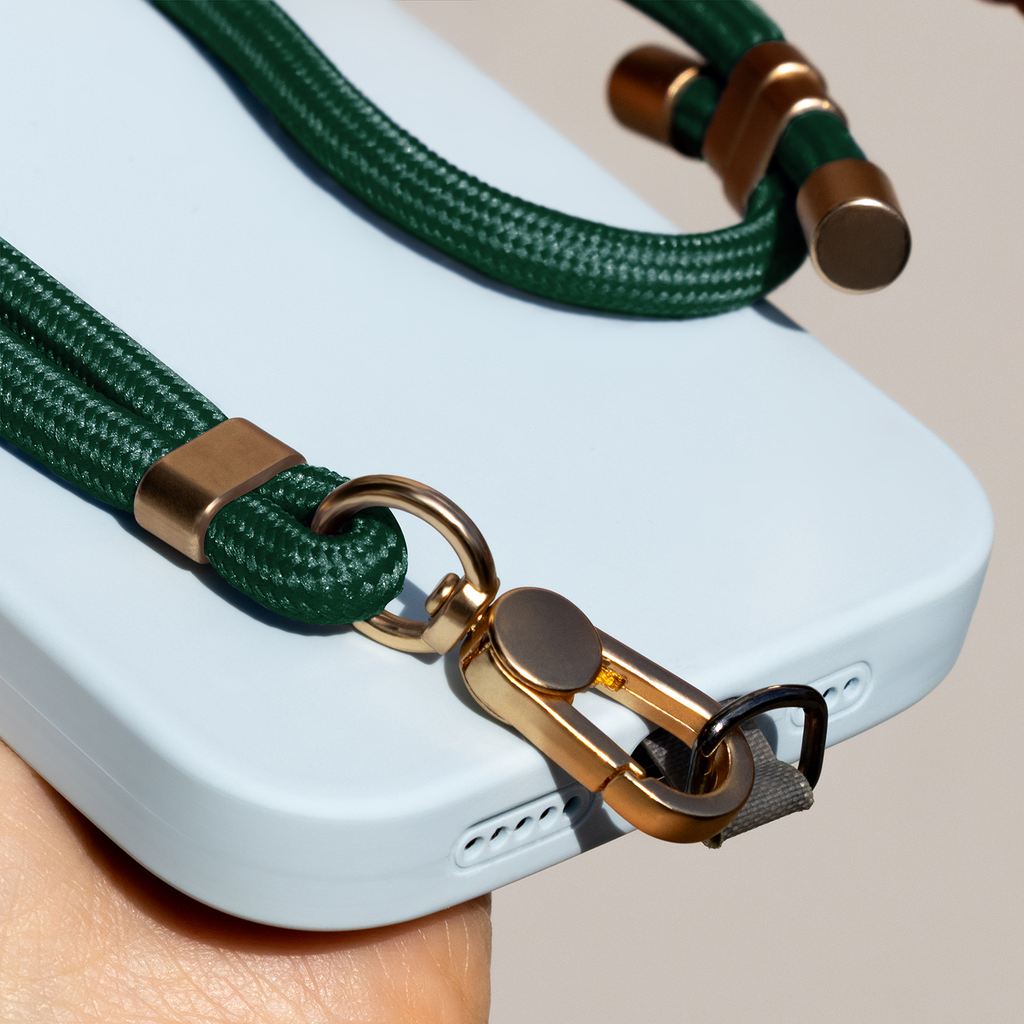Univerzális Csuklóheveder: A csuklóheveder kényelmes módja a telefon, kulcs vagy más kisebb kiegészítők hordozásának, amelyeket mindig jól jön a közelben tartani. A 6 mm vastag fonott zsinór arany elemekkel kombinálva modern és rendezett megjelenést kölcsönöz, az arany fém karabiner pedig lehetővé teszi, hogy könnyedén rögzítse a hevedert egy tokhoz, hátizsákhoz vagy kulcstartóhoz.
