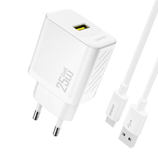 Dudao A27STEU 25W GaN USB-A hálózati töltő USB-A - USB-C kábellel - Fehér