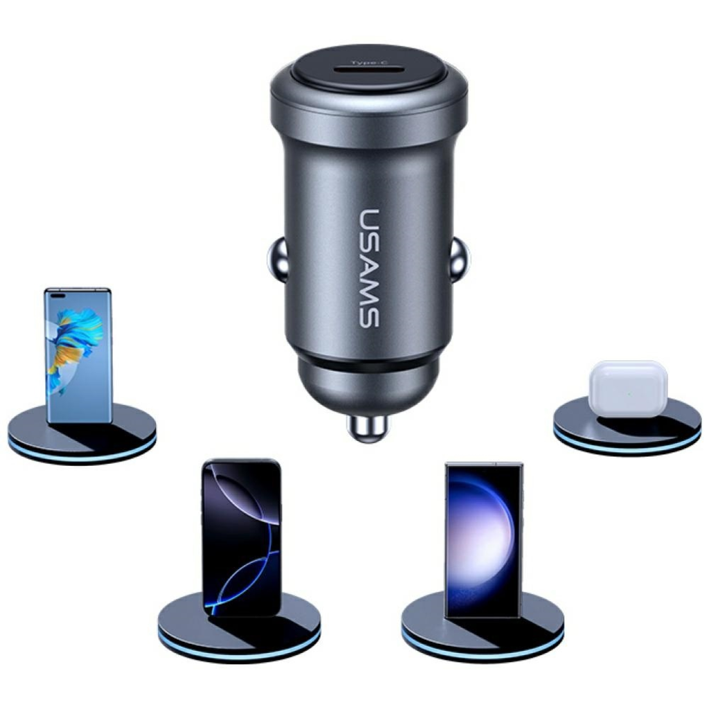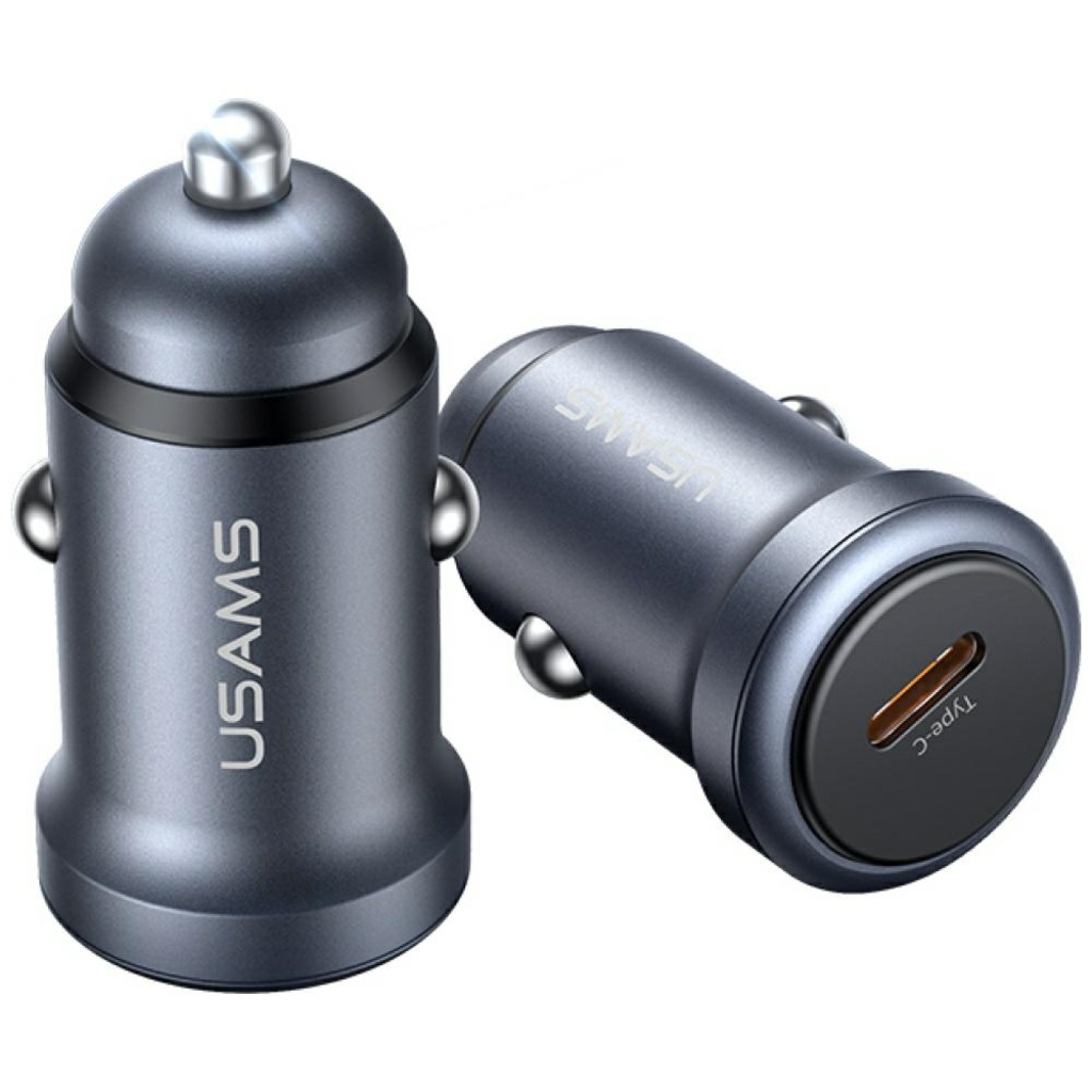 USAMS CC321 autós töltő alumínium 30W PD USB-C szürkeség