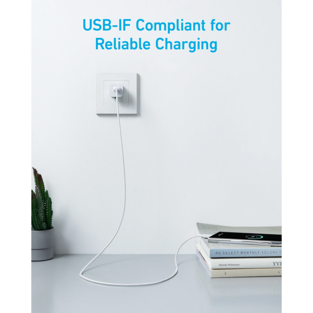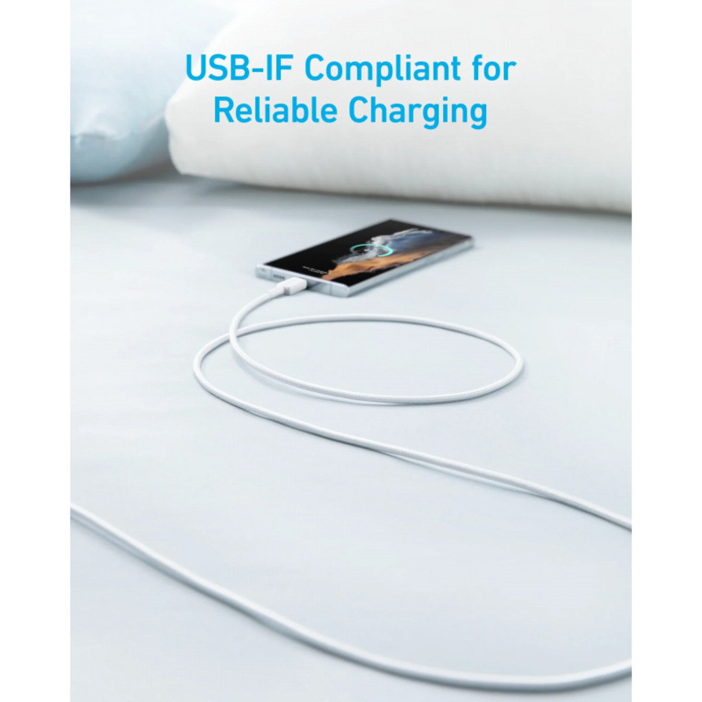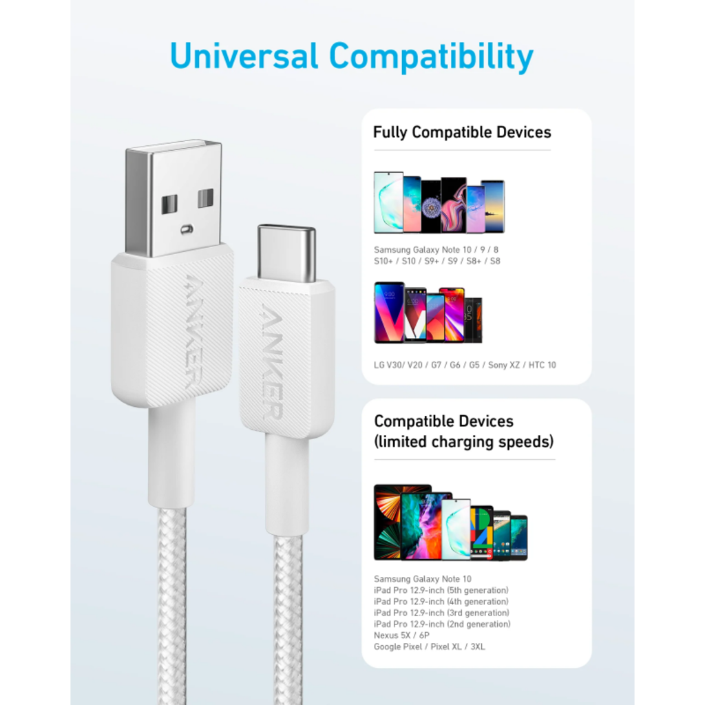 USB-A to USB-C kábel Anker 322, 18W, 3A, 1.8m, Fehér