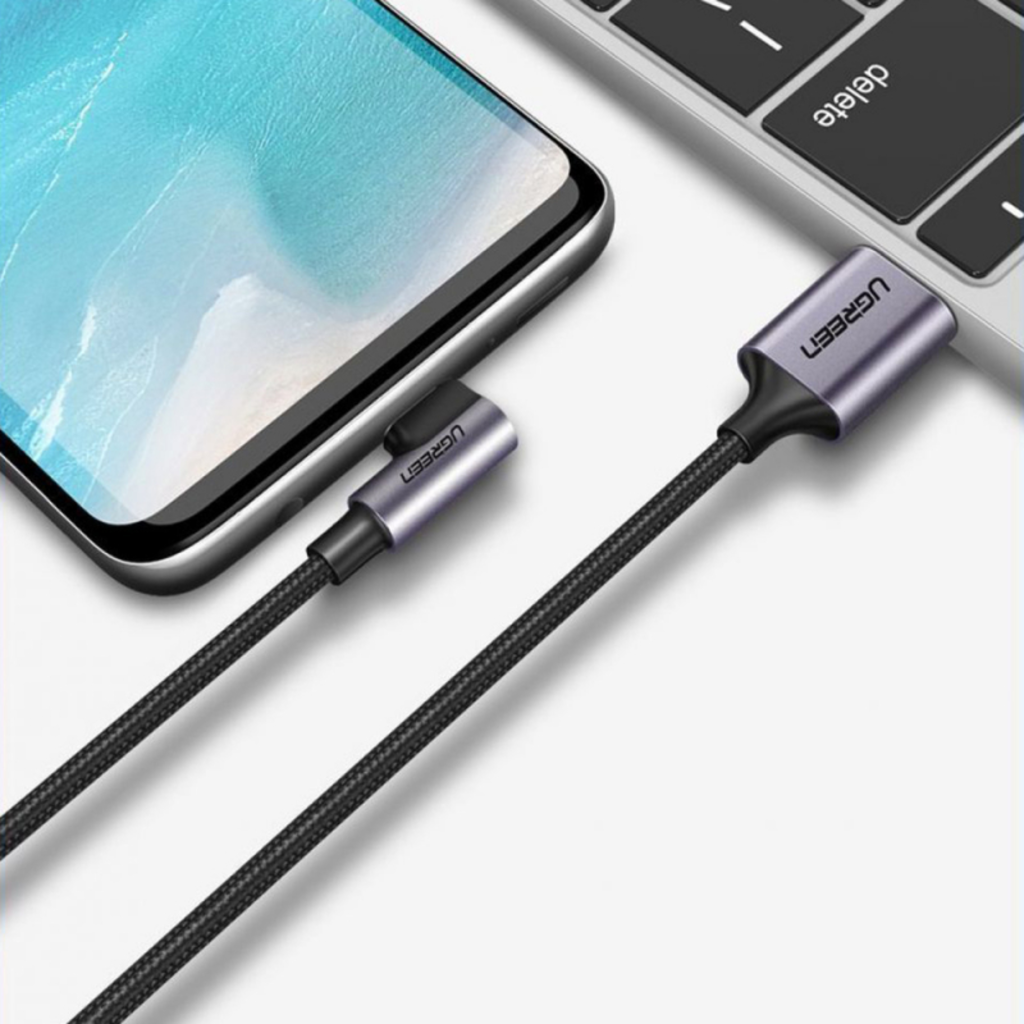 USB-A - USB-C Kábel UGREEN US284 Szögletes, 18W, 3A, 0.5m, Szürke
