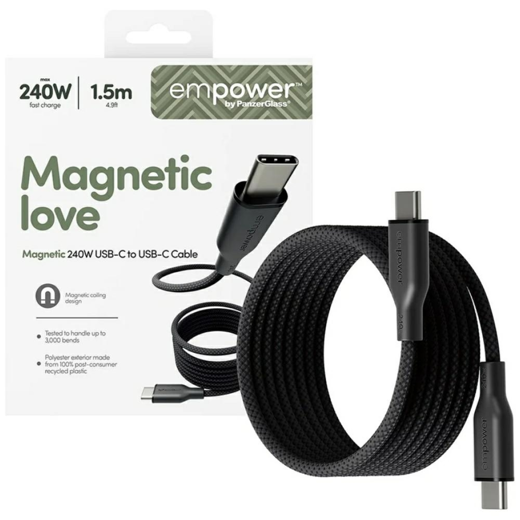 USB-C kábel PanzerGlass Empower Magnetic 240W USB-C - USB-C 1,5m fekete
