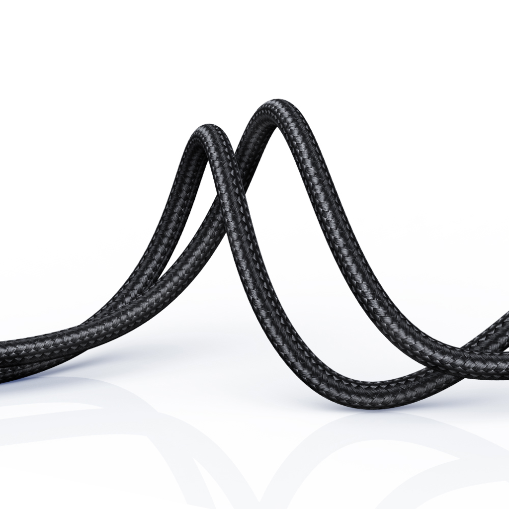 - Nylon fonott borítás: A kábel sűrűn szőtt nylon fonott borítása kiváló védelmet nyújt a mindennapi kopás, gubancolódás és szakadás ellen. Ellenállóbb, mint a hagyományos PVC kábelek, így garantált a hosszú élettartam.