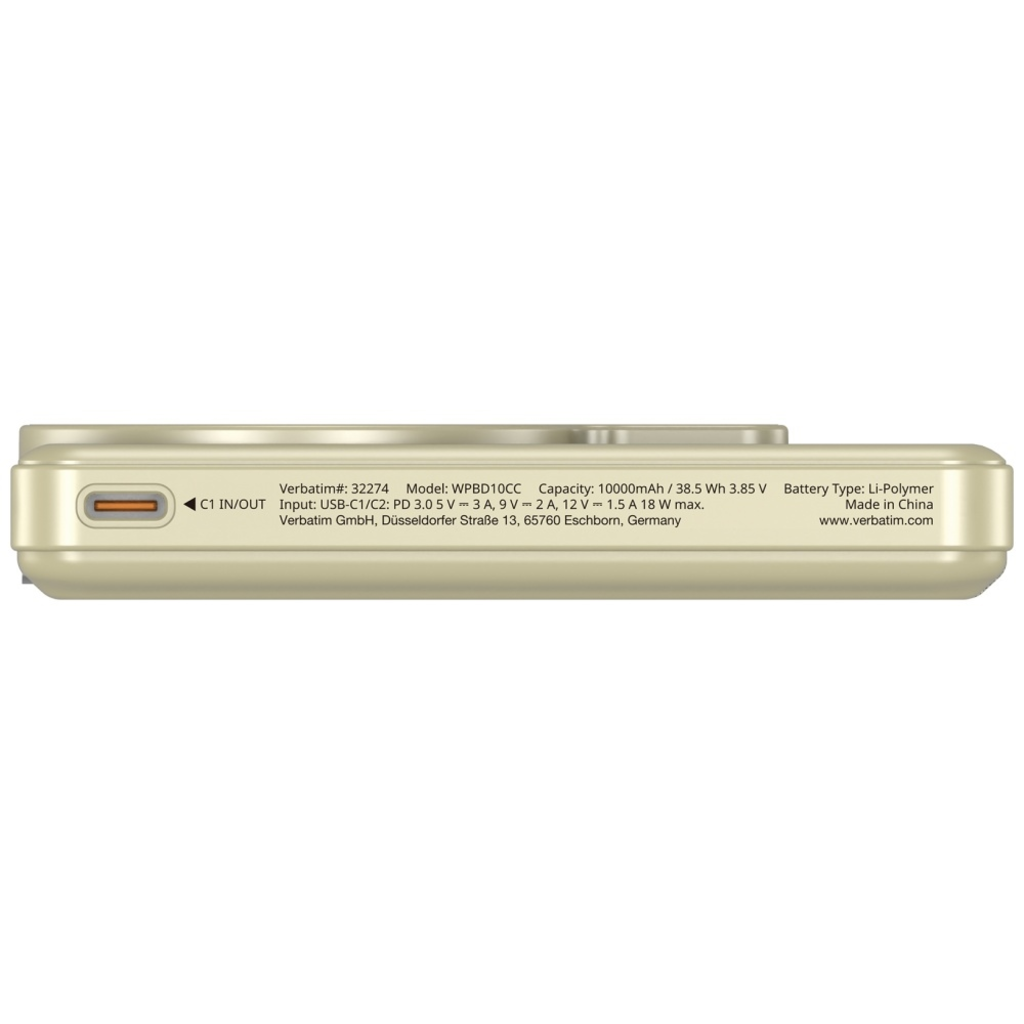 Verbatim Charge 'n' Go 10000mAh Powerbank állvánnyal mágneses, vezeték nélküli, TFT kijelzővel 2xUSB-C kábellel arany