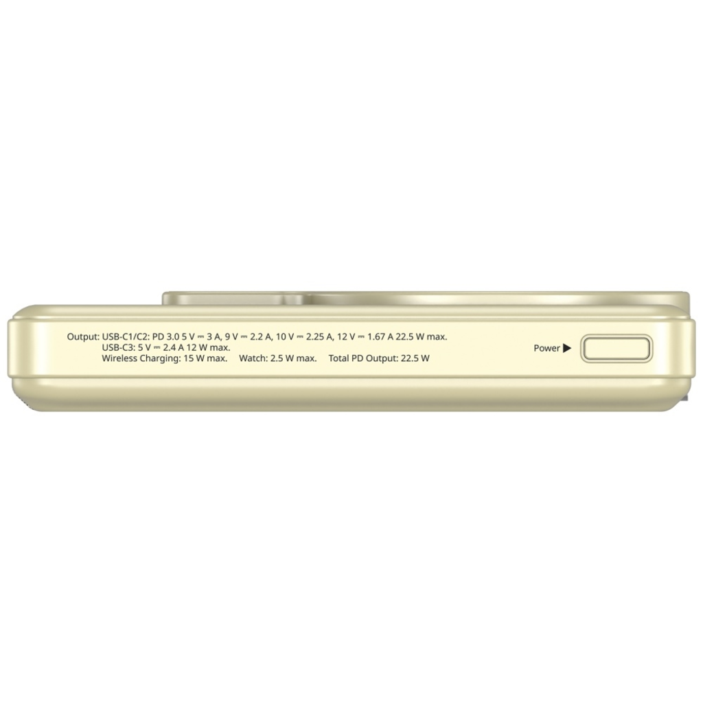 A Charge 'n' Go modell széles töltési képességeket kínál három USB-C portnak és egy vezeték nélküli töltőmodulnak köszönhetően. Két beépített USB-C kábel lehetővé teszi az eszközök gyors csatlakoztatását, és a PD 3.0 kompatibilis portok akár 22.5 W töltést is lehetővé tesznek. Egy további USB-C port akár 12 W kimeneti teljesítményt biztosít. A vezeték nélküli töltés támogatja az 5 W, 7.5 W, 10 W és 15 W szinteket, míg az óra töltési szakasza 2.5 W-ot kínál. Az eszköz PD 3.0, QC 3.0, Apple 2.4 A, BC 1.2, DCP és AFC protokollokat támogat, biztosítva a stabil és hatékony töltést különböző mobil eszközökhöz.