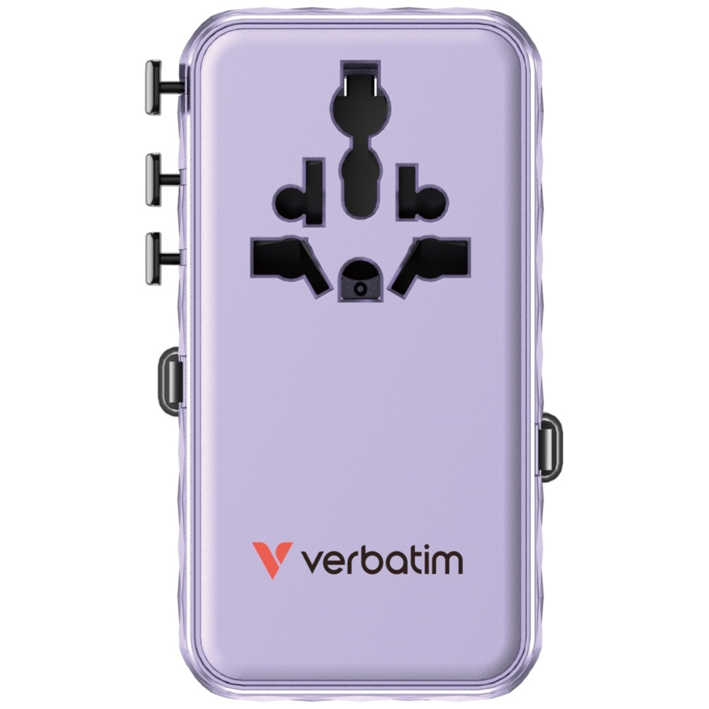 Verbatim Travel Adapter EU/UK/US GaN 1xUSB-C/1xUSB-A/2xUSB-C PD 70W lila