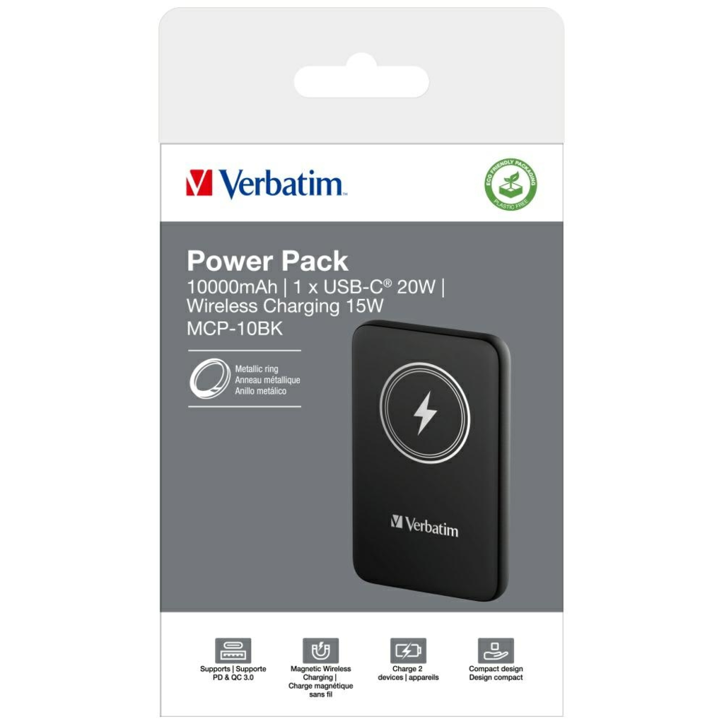 A Verbatim Charge'n'Go Vezeték nélküli Powerbank a sokoldalúságra és kényelemre tervezett eszköz, amely tökéletes a mindennapi használatra. 15W mágneses vezeték nélküli töltési lehetőséggel és PD20W technológiával gyors és hatékony töltést biztosít különféle eszközök számára. A mágneses rögzítés lehetővé teszi, hogy könnyedén csatlakoztassa a telefonjához, ezzel biztosítva a vezeték nélküli töltést útközben. A power bank kompakt és könnyű kialakítása megkönnyíti, hogy zsebében vagy táskájában hordozza, biztosítva ezzel a mobilitást és a használat kényelmét.