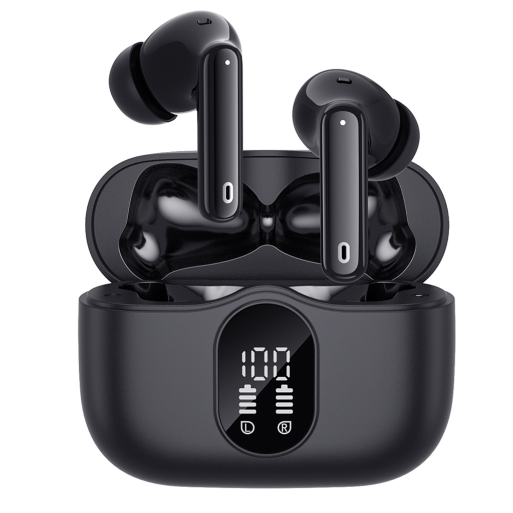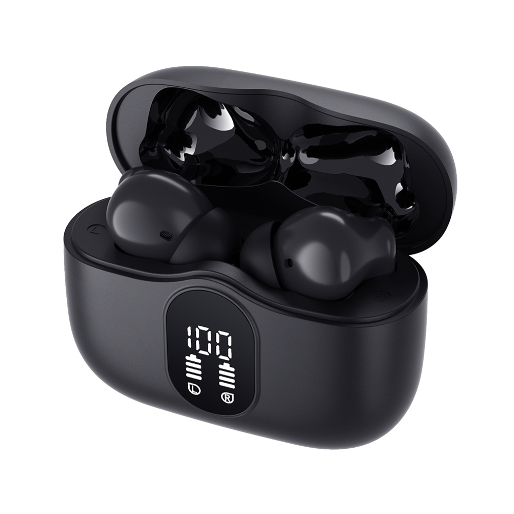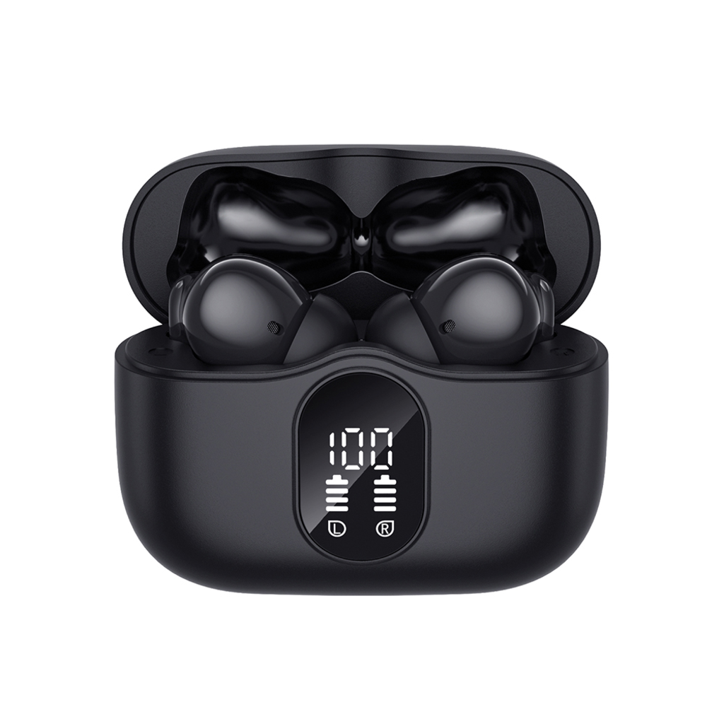 - Digitális LED kijelző a tokon: Az innovatív töltőtok előlapján található digitális LED kijelzőn azonnal ellenőrizheti a tok akkumulátorának töltöttségi szintjét (a képeken 100% látható), valamint a bal és jobb fülhallgató aktuális töltöttségi állapotát. Ez a praktikus funkció mindig naprakész információt nyújt, így sosem éri meglepetés.