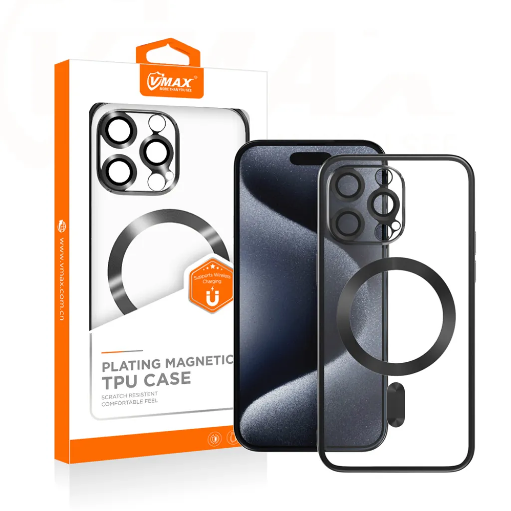 Vmax MagSafe Kompatibilis Electroplating TPU iPhone 15 6,1" fekete tok