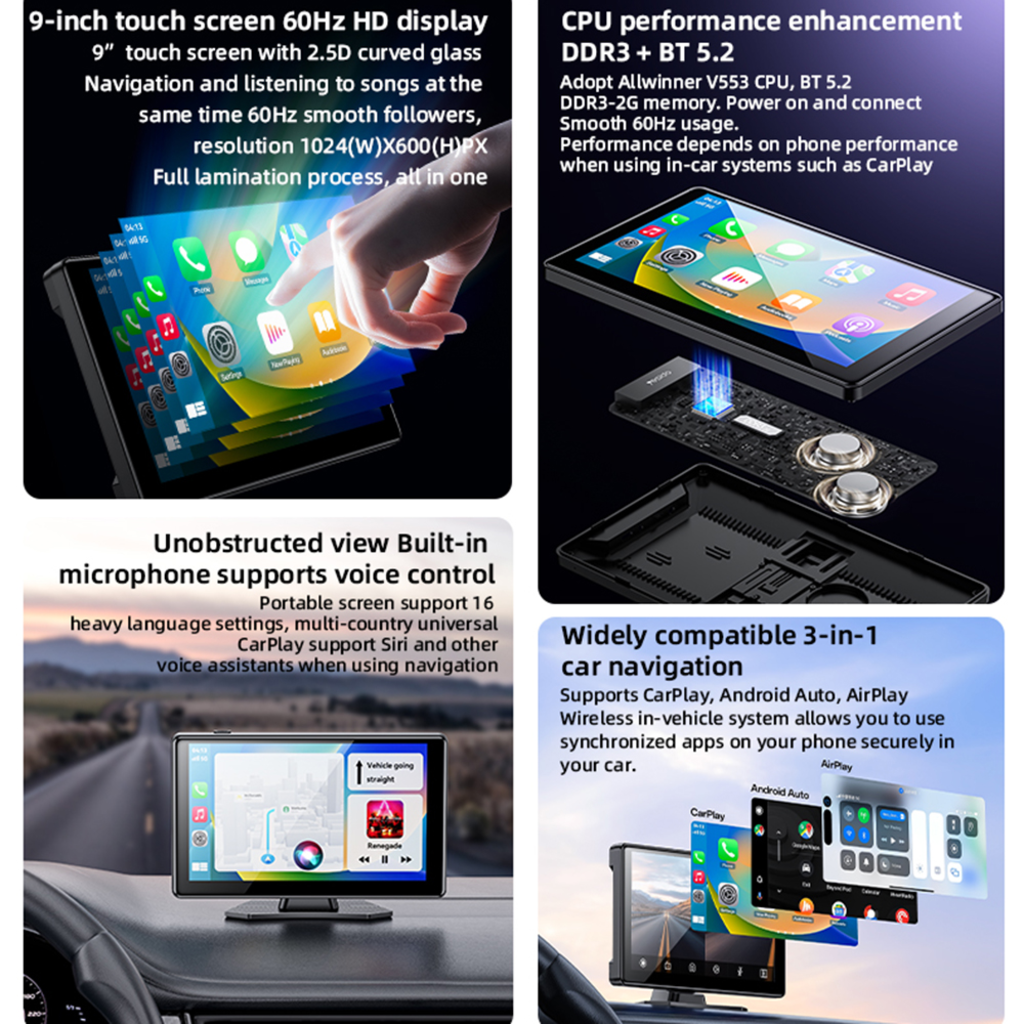 A Yesido KM18 vezeték nélküli autós sztereó rendszer a modern technológia és a kényelem tökéletes ötvözete, amelyet úgy terveztek, hogy minden utazást élvezetesebbé és biztonságosabbá tegyen. Ez a Plug&Play készülék 9 hüvelykes HD érintőképernyővel, kettős kamerarendszerrel (4K elöl, 2K Full HD hátul) és vezeték nélküli CarPlay, Android Auto, valamint AirPlay támogatással érkezik, mindezt elegáns fekete színben.