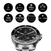 - Rozsdamentes acél tok és szíj: Robusztus és elegáns, mindennapi viseletre tervezve.
