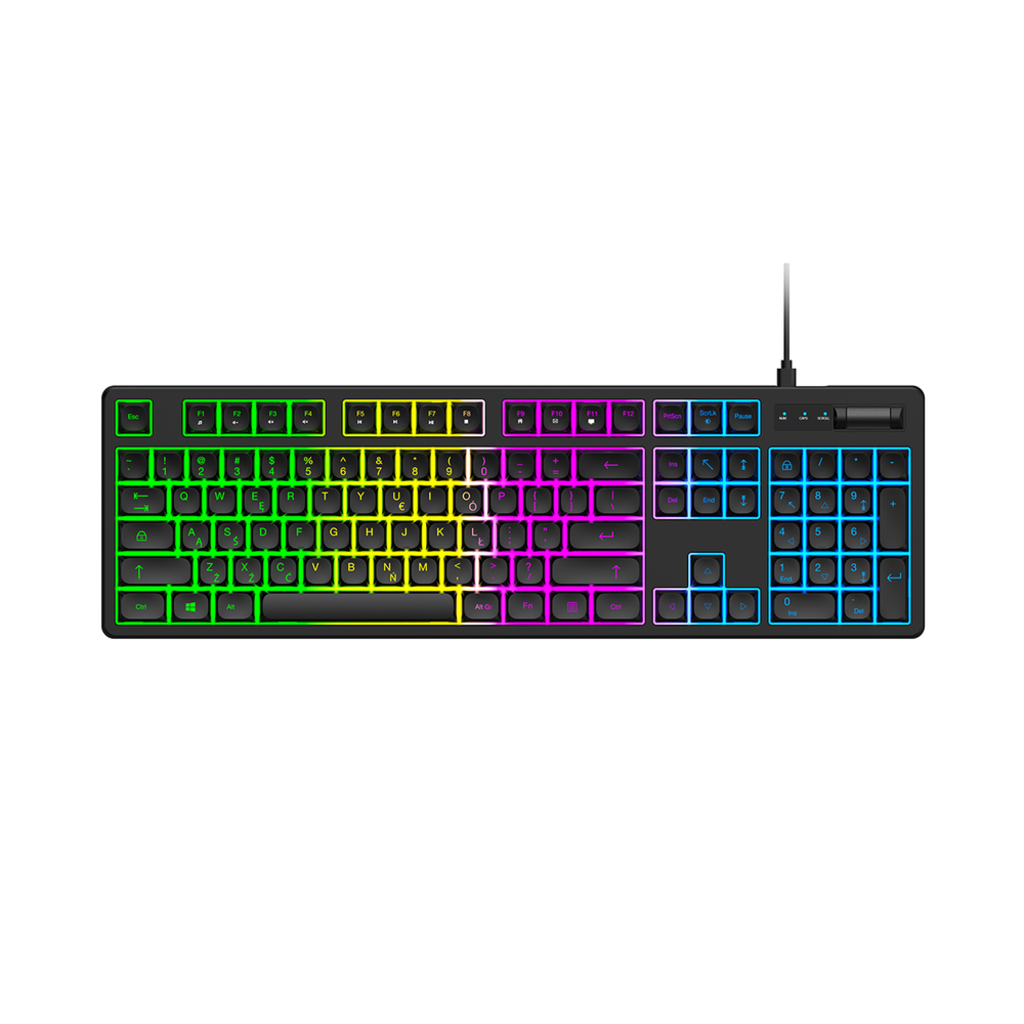 A szivárványos RGB háttérvilágítással könnyebb játszani sötétben. A színes fények játékos hangulatot teremtenek, és javítják a billentyű láthatóságát éjszaka. A billentyűzetnek egyetlen háttérvilágítási módja van, amely könnyen kikapcsolható.