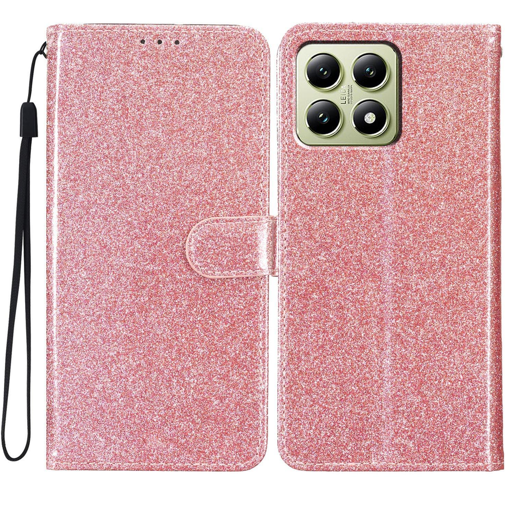 Xiaomi 15T Pro csillámos flipes bőrtok – rose gold