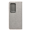 Elegáns tok fémkerettel a telefon fokozott védelme érdekében. Az attraktív textúra és a kellemes tapintású anyag stílusos tokot hoz létre, amely kiemeli a készülék modern dizájnját. A puha velúr anyag a tok belsejében és a tartó részben megóvja a készüléket mindkét oldalról a sérülésektől és karcolásoktól. A fogantyú rugalmas szilikonból készült és kivágásokkal rendelkezik. Az alumínium keret a széleken még erősebbé teszi a tokot és még jobban védi a készüléket. A fém és az eredeti anyag kombinációja egyedi és modern kompozíciót hoz létre, amelynek köszönhetően a készülék stílusos és elegáns megjelenést kap. A tok egy kis zsebet is tartalmaz a kéznél lévő dokumentumok vagy bankjegyek számára. A tok vízszintes állíthatósággal is rendelkezik filmek vagy fotók megtekintéséhez. Egy erős mágnes könnyíti meg a tok bezárását és kinyitását, és megakadályozza a véletlen kinyílást.