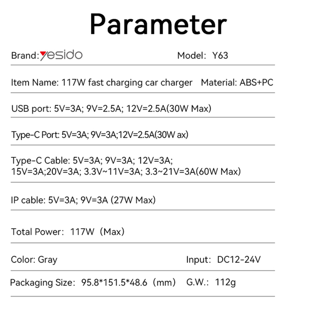A Yesido Y63 autós töltő nem csupán erős, de okos is. Az elegáns, szürke ABS+PC házban prémium minőségű PCB és chipek dolgoznak, garantálva a biztonságos és stabil működést, védelmet nyújtva a túltöltés, túláram és rövidzárlat ellen. A beépített LED kijelzőn valós időben követheted nyomon a töltési feszültséget és áramerősséget, így mindig tisztában lehetsz eszközeid töltöttségi állapotával, míg a színes LED hangulatfény modern és futurisztikus megjelenést kölcsönöz az autó belterének. A visszahúzható kábelek praktikusak, helytakarékosak és megakadályozzák a kábelrengeteget, így autód belseje mindig rendezett marad.