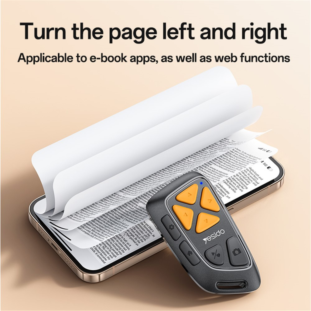 Yesido - Bluetooth távirányító (SF25) - Videók lapozása/Könyvek olvasása/Fényképek készítése távolról, 200mAh - Fekete