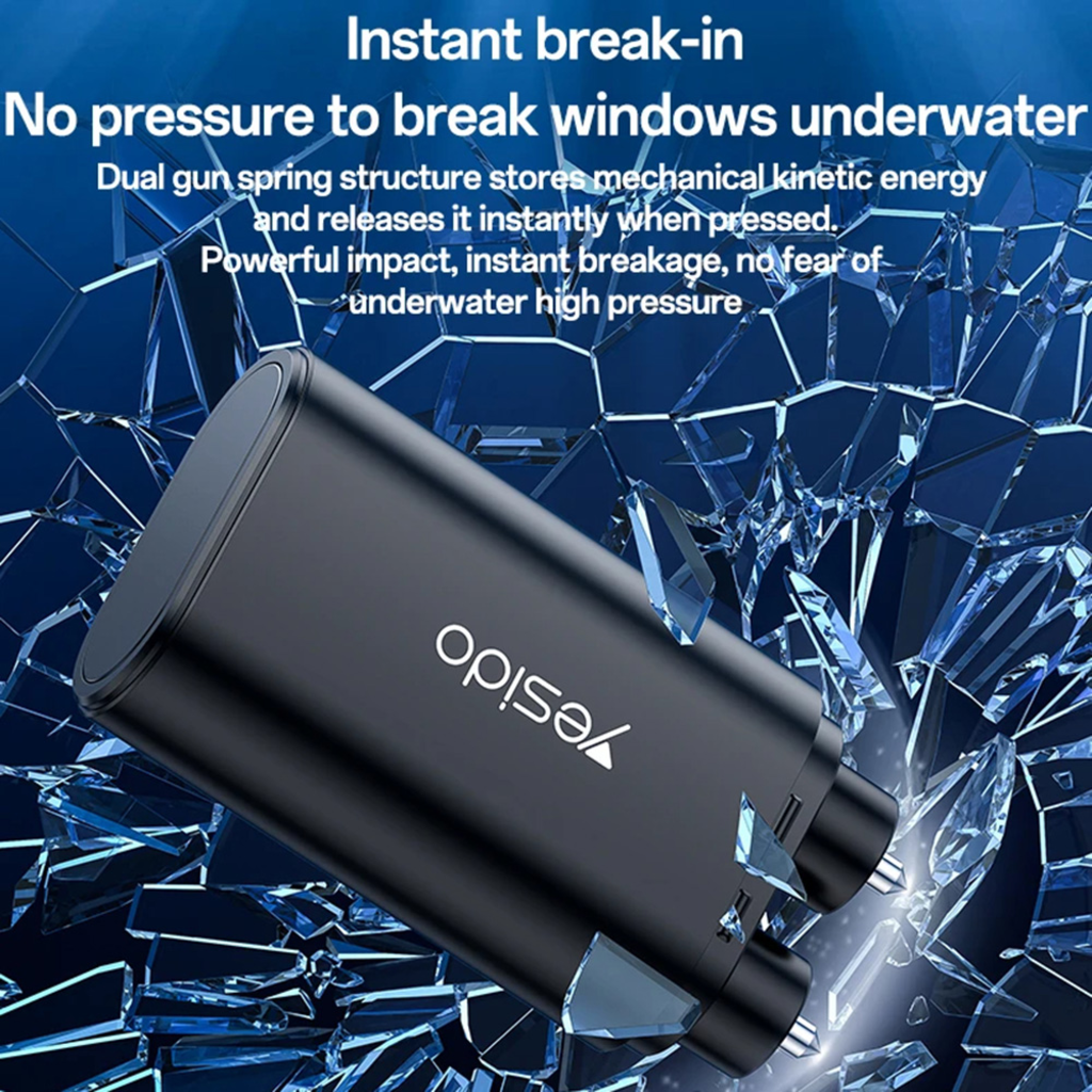 A Yesido C248-at úgy tervezték, hogy egyetlen mozdulattal garantálja a gyors menekülést. A felugró, volfrám acél kalapácsfej, amely akár 55 Rockwell keménységű, extrém ellenállást biztosít fém és üveg ellen is. A kettős, pisztoly típusú rugós szerkezet mechanikai kinetikus energiát tárol, és egyetlen préseléssel azonnal szabadítja fel azt, így könnyedén betöri az autó ablakát – még víz alatt, magas nyomás mellett is, nyomás kifejtése nélkül! Ez a funkció biztosítja, hogy még a leggyengébb felhasználók is könnyedén törhessék be az ablakot, elősegítve a gyors és biztonságos kijutást.