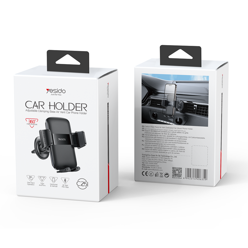 - Univerzális kompatibilitás: A Yesido C251 a legtöbb 4.8–7.2 hüvelykes okostelefonnal kompatibilis, és szinte bármilyen autós szellőzőrácsra könnyedén felszerelhető, modellválogatás nélkül. Nem kell válogatnia autós vagy telefonmodell szerint.