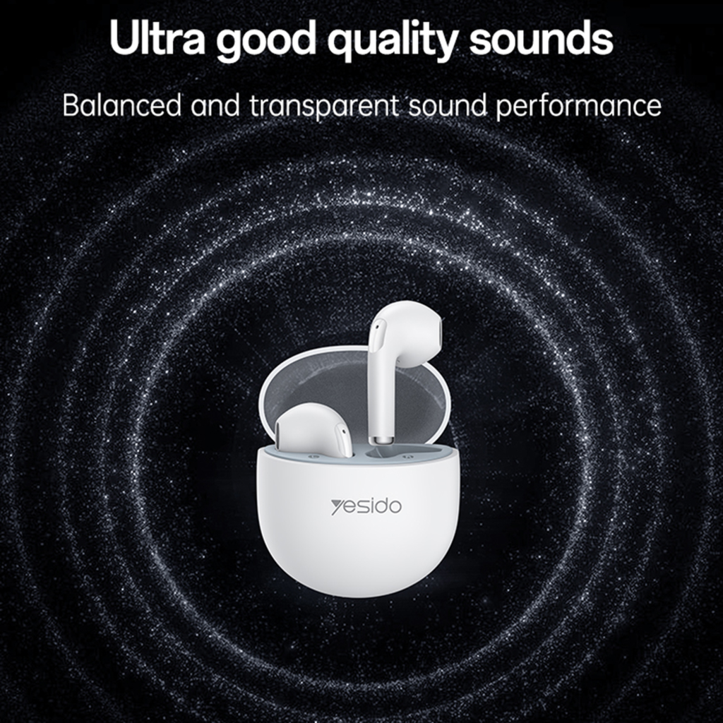 Yesido TWS35 Vezeték nélküli fülhallgató - Mikrofonos, Bluetooth 5.3, Fél-fülbe helyezhető kialakítás, 250mAh - Fehér