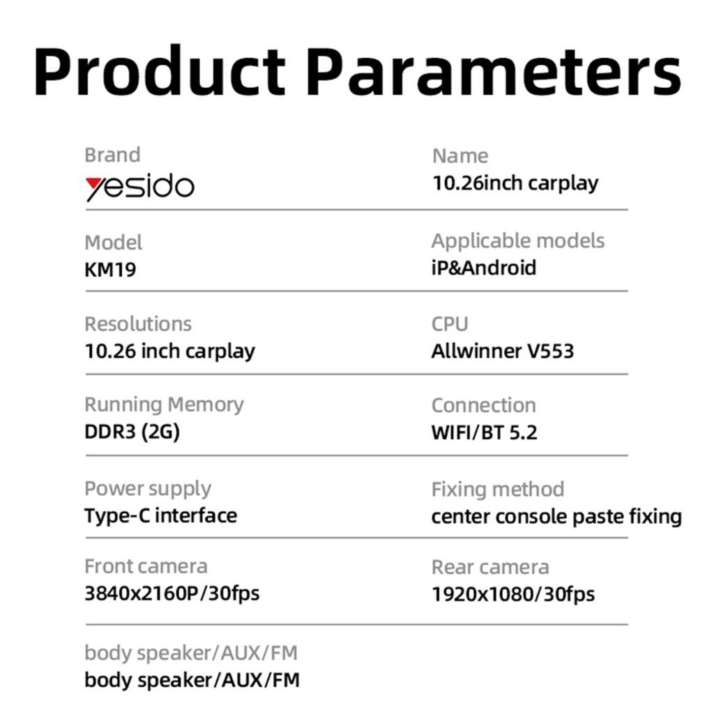 A Yesido KM19 vezeték nélküli autós sztereóval a modern technológia és a kényelem találkozik az autójában. Ez a 4 az 1-ben eszköz nem csupán egy multimédiás központ, hanem egy megbízható útitárs is, amely navigációt, szórakozást és biztonságot nyújt egyetlen elegáns csomagban. A Plug&Play telepítésnek és a rengeteg funkciónak köszönhetően pillanatok alatt feldobhatja autója belső terét és utazási élményét.