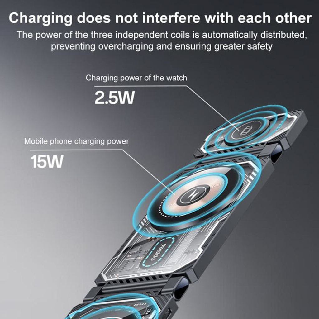 Yesido DS25 – Összecsukható 3 az 1-ben vezeték nélküli töltőállomás